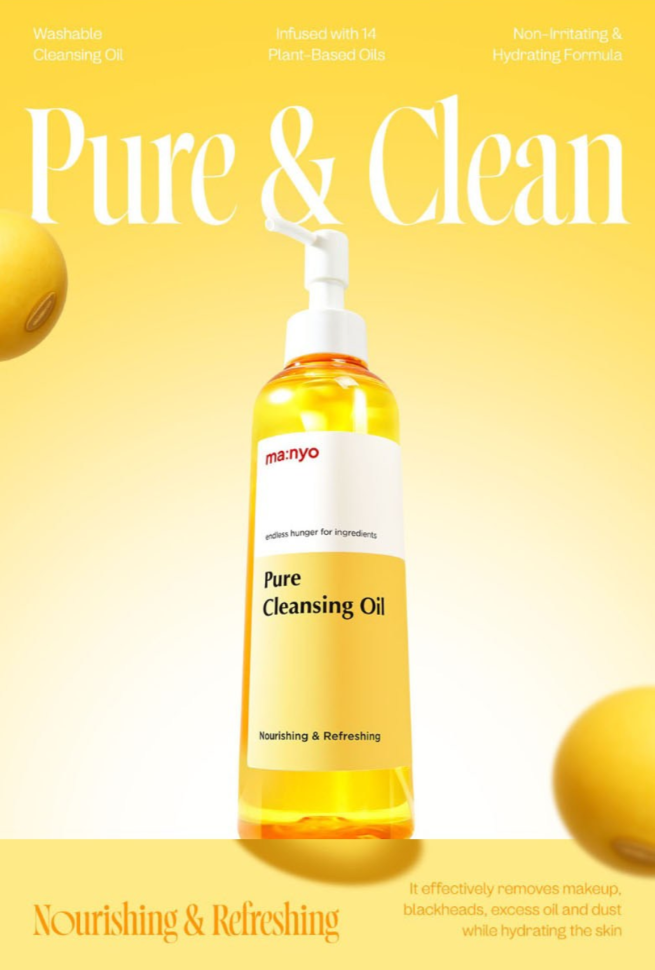 Ma:nyo Factory Pure Cleansing Oil is a gentle yet powerful cleansing oil formulated to effectively remove makeup, impurities, and excess sebum without stripping moisture from the skin. Enriched with natural plant-derived oils such as camellia, argan, and olive oils, it softens and soothes skin while maintaining hydration. The lightweight texture transforms to a milky emulsion upon contact with water, facilitating deep cleansing and ensuring no oily residue remains. Suitable for all skin types, including sensitive skin.
