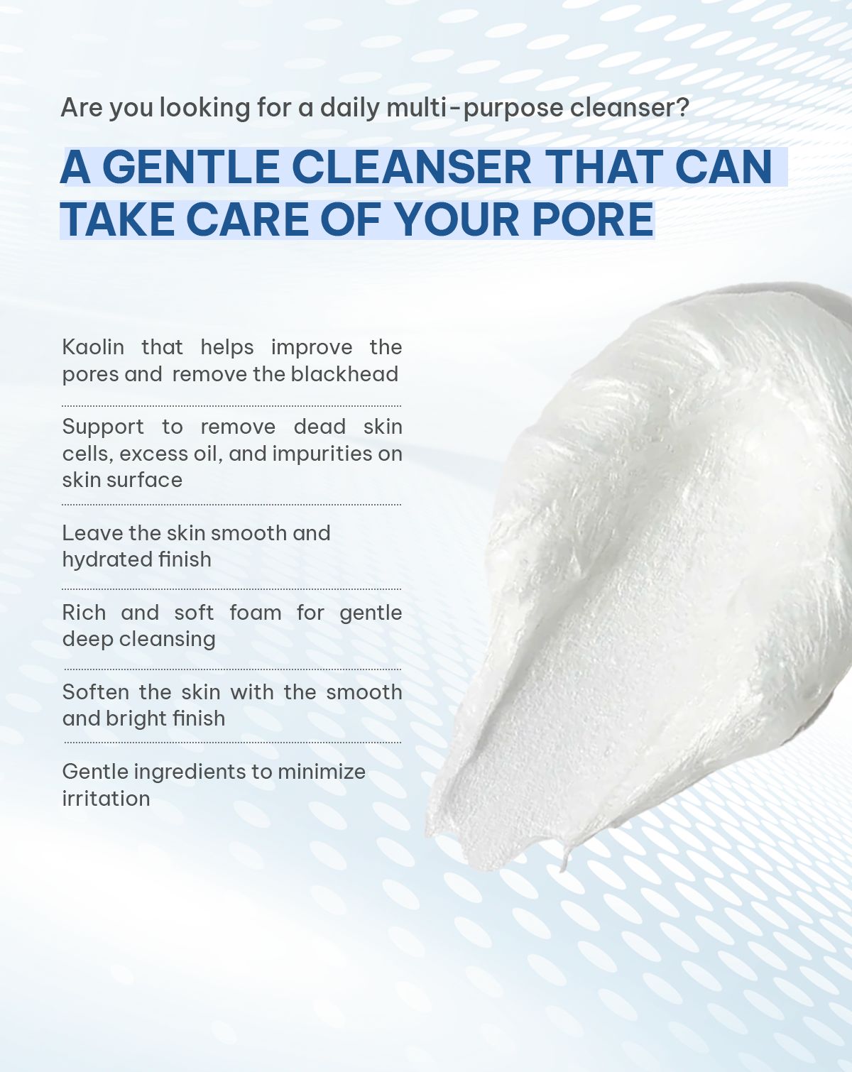 Deep cleansing, pore care, hydrating finish |