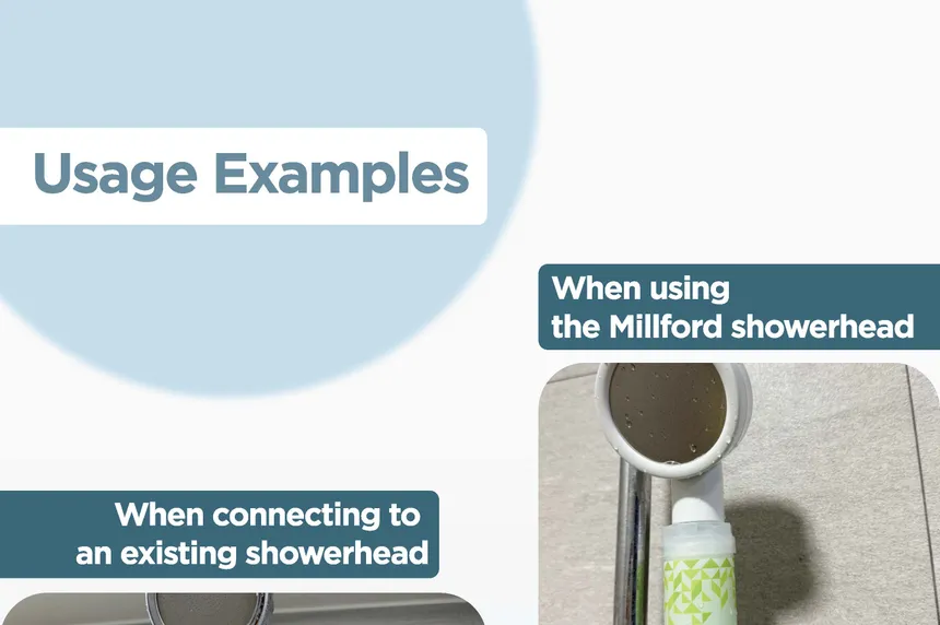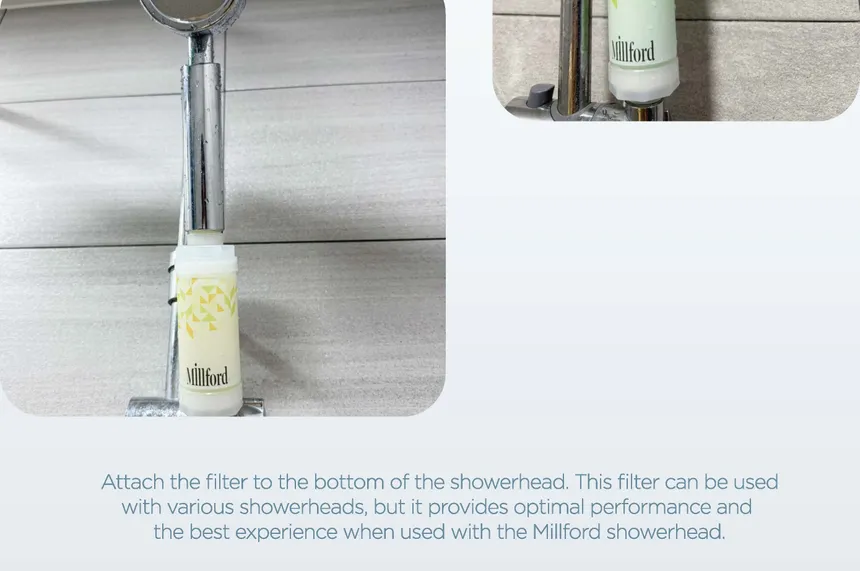 - Install the Millford Green Tea filter securely between the water outlet and shower head/hose.