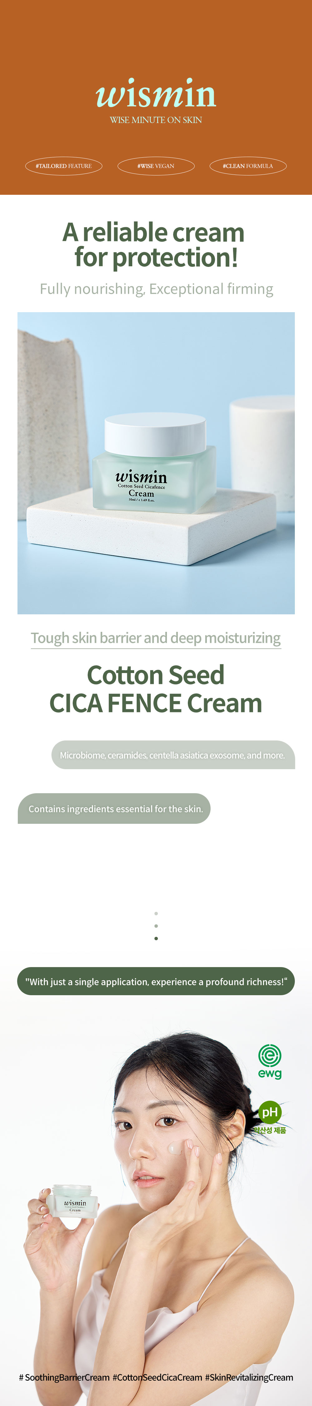 Restore and protect your skin’s vitality with the clean, calming power of WISMIN Cotton Seed Cicafence Cream.